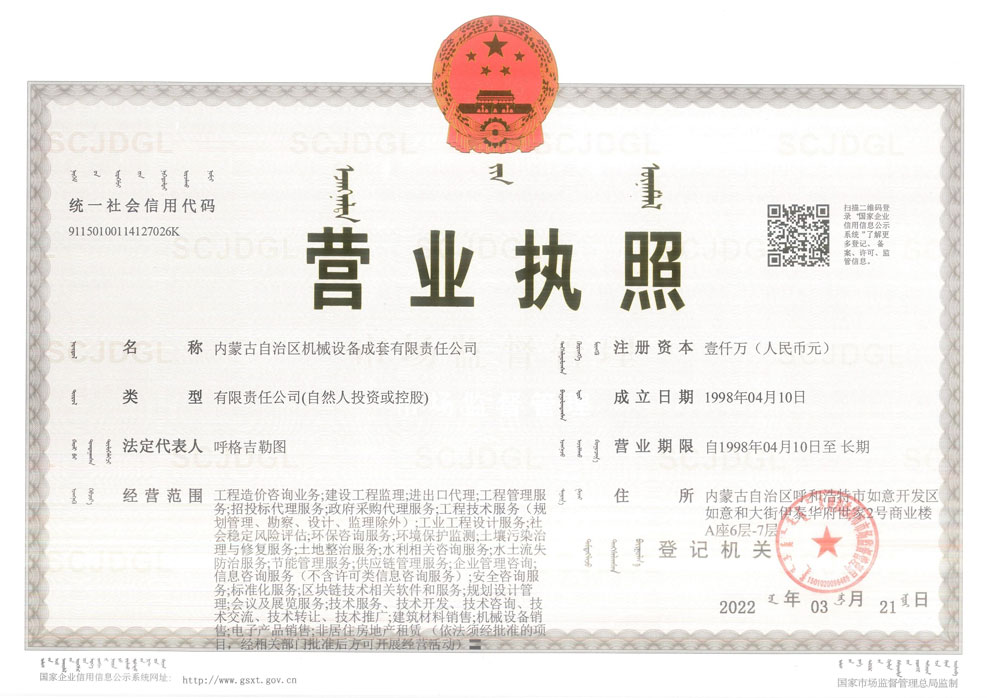 內(nèi)蒙古自治區(qū)機械設(shè)備成套有限責任公司營業(yè)執(zhí)照